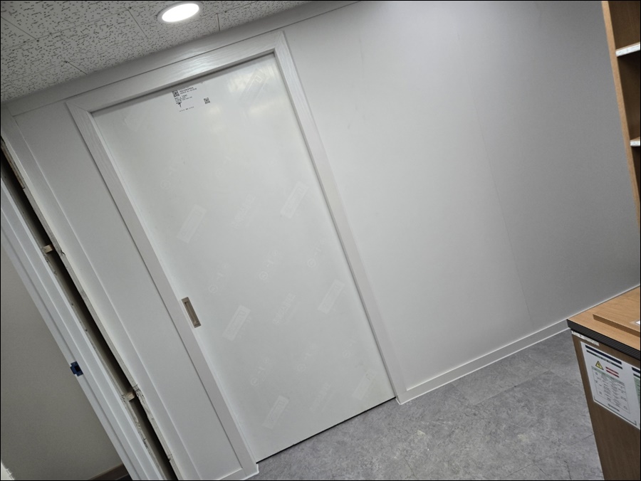 래핑칸막이 슬라이딩문짝시공